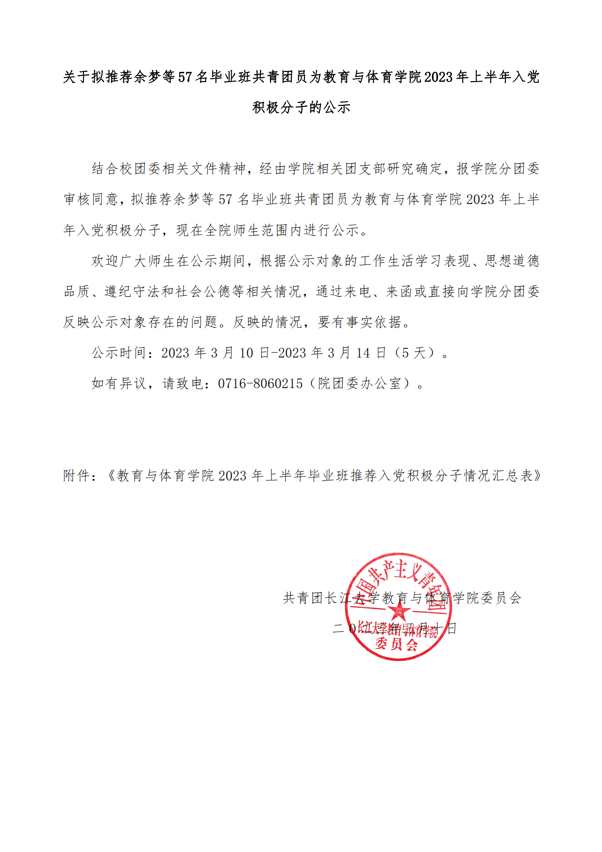 关于拟推荐余梦等57名毕业班共青团员为英国上市公司官网3652023年上半年入党积极分子的公示